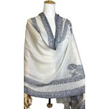 Experience authentic Himalayan luxury with this NPIA certified 100% pure cashmere pashmina, handcrafted by master artisans in Nepal's majestic Annapurna region. AUTHENTIC FEATURES: Premium Changra goat cashmere sourced at 14,000+ feet altitude Ultra-fine 16-micron fibers for exceptional softness and warmth Traditional slate blue paisley borders using centuries-old techniques Hand-knotted fringes with matching blue accents Lightweight 40-gram design perfect for year-round elegance PERFECT FOR: Bridal and wedding ceremonies as elegant wrap or shawl Evening events, galas, theater, and formal occasions Business and professional settings as sophisticated accessory Travel companion - lightweight and versatile styling options Meaningful luxury gift for special milestones and celebrations PRODUCT SPECIFICATIONS: Dimensions: 83 inches long x 23 inches wide (210cm x 59cm) Weight: 1.4 ounces (40 grams) - feather-light luxury Material: 100% authentic Himalayan Changra goat cashmere Color: Pristine snow white base with slate blue paisley borders Production: 7-day traditional handcrafting process by skilled artisans This exquisite pashmina represents the pinnacle of Himalayan textile artistry, where pristine snow white cashmere meets the refined beauty of traditional paisley craftsmanship. Each piece supports ethical sourcing practices and helps preserve the ancient weaving heritage of Nepal's mountain communities.