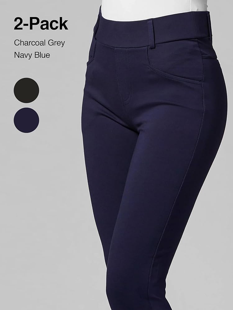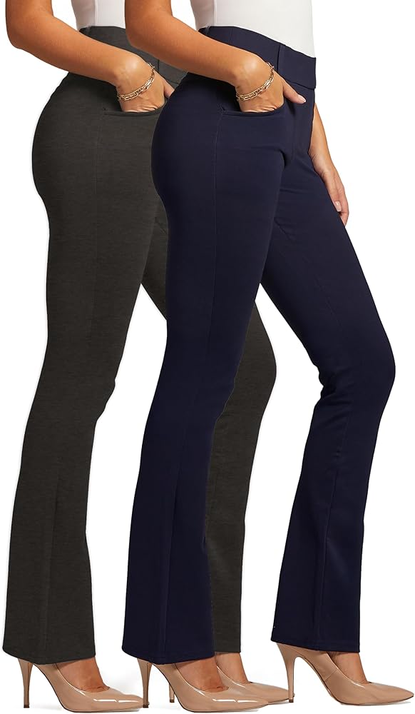 Polished comfort meets effortless style in our 2-pack bundle of high-rise bootcut pants. Featuring two of our best-selling shades – Charcoal and Navy – this set is made for days that start at the office and end after hours. The flattering bootcut silhouette, tummy control waistband, and structured knit fabric deliver the perfect blend of sleek, supportive, and yoga-soft. With phone-friendly pockets and a pull-on design, these slacks are a wardrobe essential—times two.
