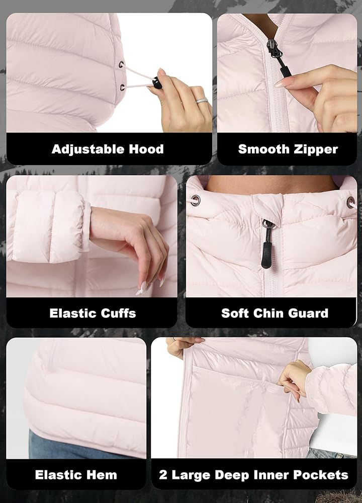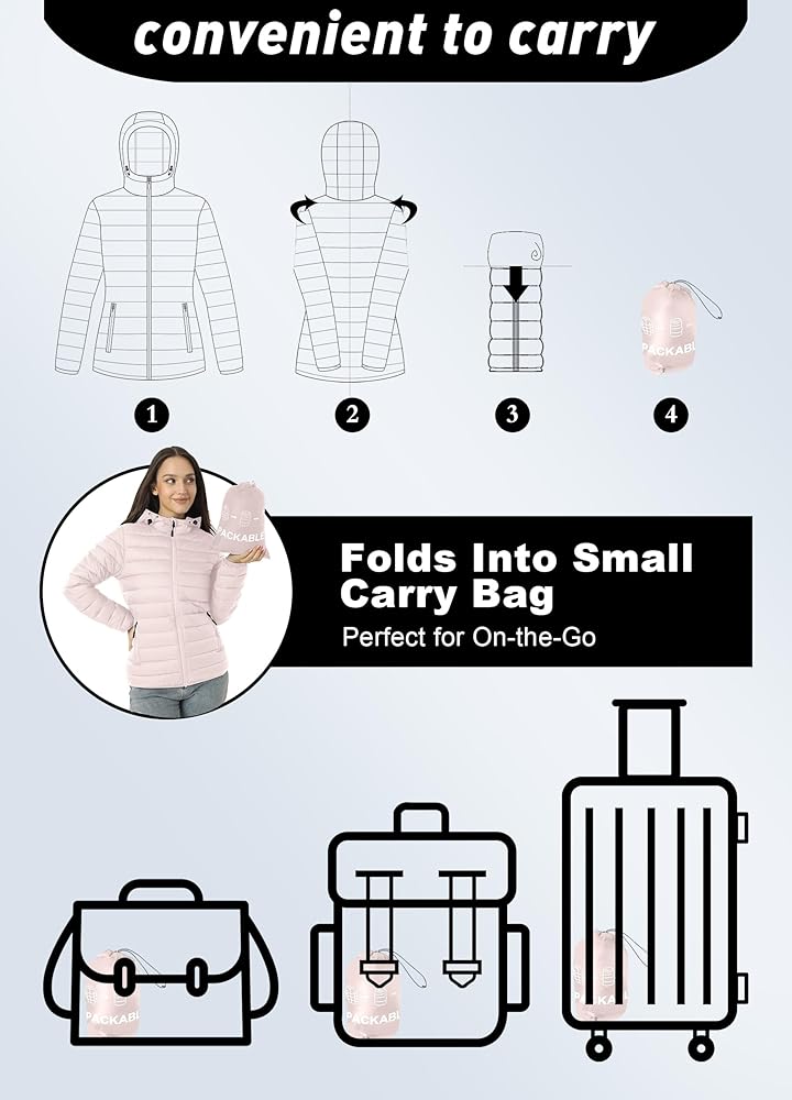 Packable Jacket Women Design: Quilted jackets for women folds into the included storage pouch and easily fits into luggage or a carry-on bag, saving space and making it ideal for outdoor hiking, commuting, or travel in the fall and winter