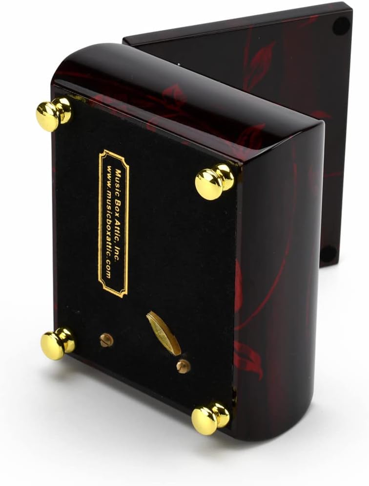 MusicBoxAttic - Burgundy Beveled Top Wooden Music Jewelry Box Musical Jewelry Box with Artistic Floral Motif - 18-Note Mechanical Movement - 5" L x 4.5" W x 2.5" H (Annie's Song)