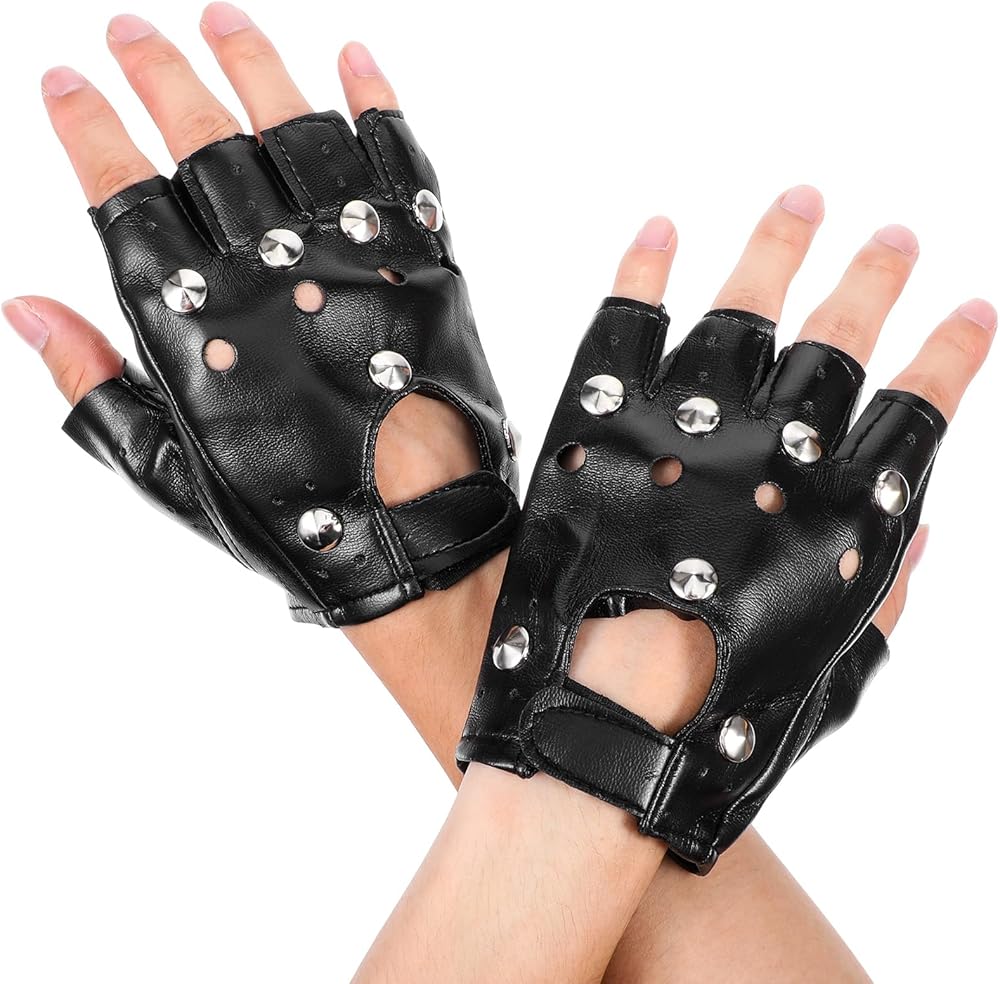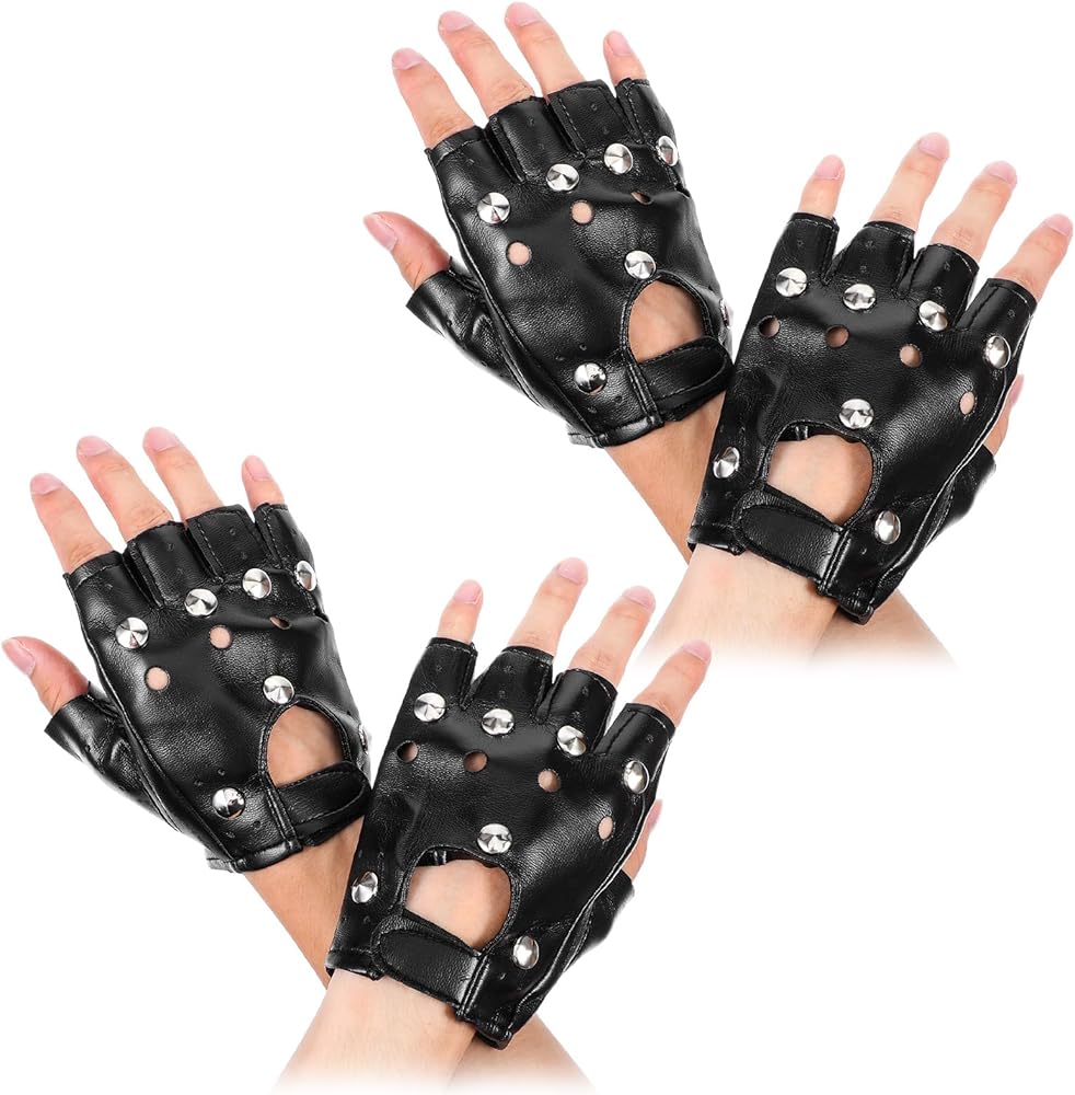 2 Pairs Steampunk Gloves, Biker Glove Biker Gloves for Women Black Leather Gothic Fingerless Rivet Motorcycle Accessories Rocker Costume for Men Guitar Retro Punk Style Fashion Women
