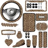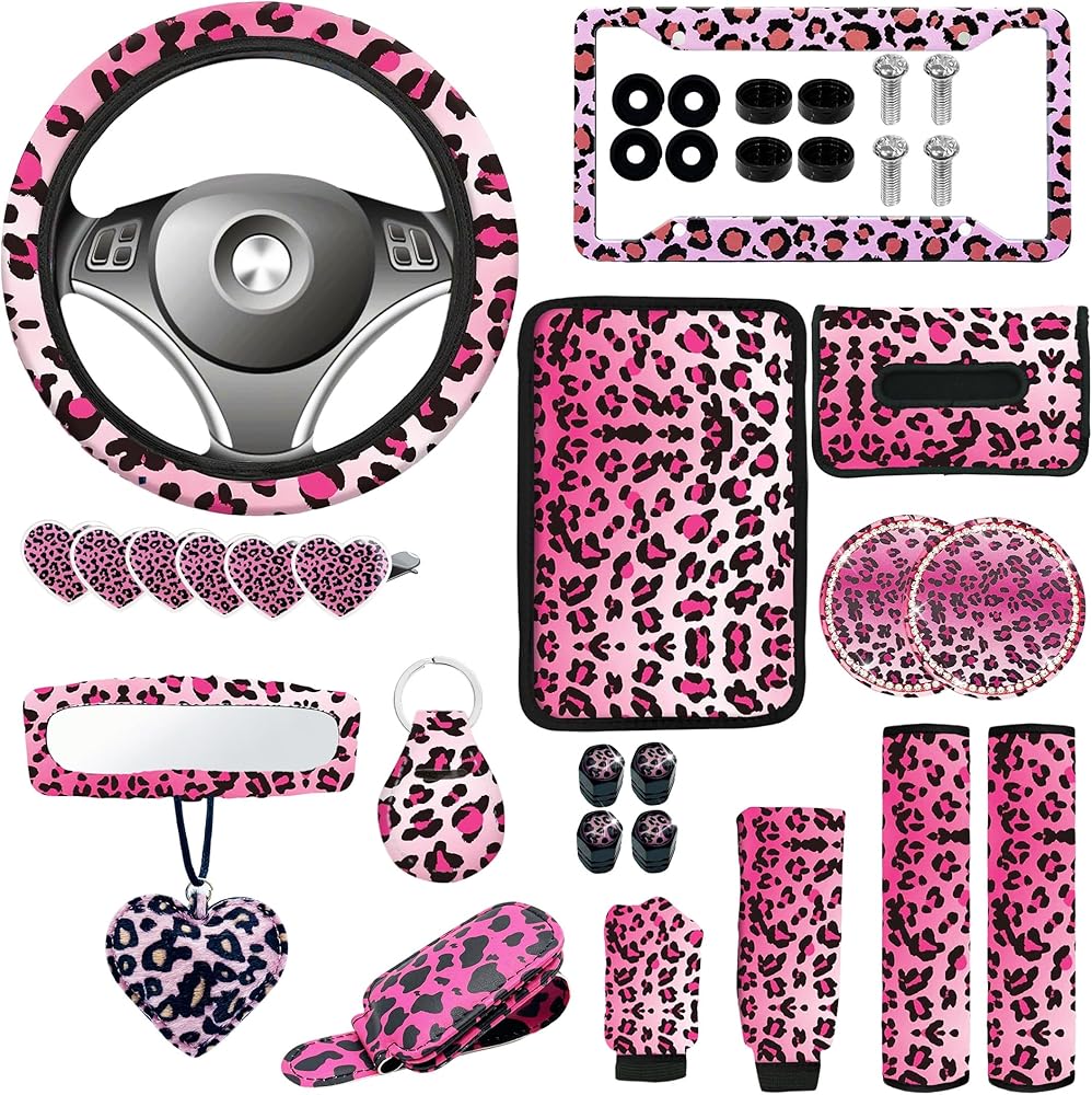 This car interior features a stylish print,adding a touch of style to your car. The steering wheel cover is adjustable,approximately 14-16 inches in diameter. This universal car seat cover is suitable for a variety of vehicles,including sedans,trucks,SUVs,and even commercial vehicles. Give your car a more elegant and stylish look. Plus,it can be removed at any time without leaving any marks on the center console. It insulates in the summer,provides warmth in the winter,and features vibrant colors for endless driving pleasure. The included steering wheel cover,parking brake cover,and shift lever protect your car's steering wheel,parking brake,and shift lever from wear and tear,ensuring a secure grip. 1 steering wheel cover 2 seat belt covers 1 armrest pad 1 shift lever cover 1 parking brake cover 1 tissue box 1 keychain 1 rearview mirror cover 1 glasses holder 2 coasters 1 license plate holder 4 valve caps 6 car air freshener vent clips 1 rearview mirror ornament
