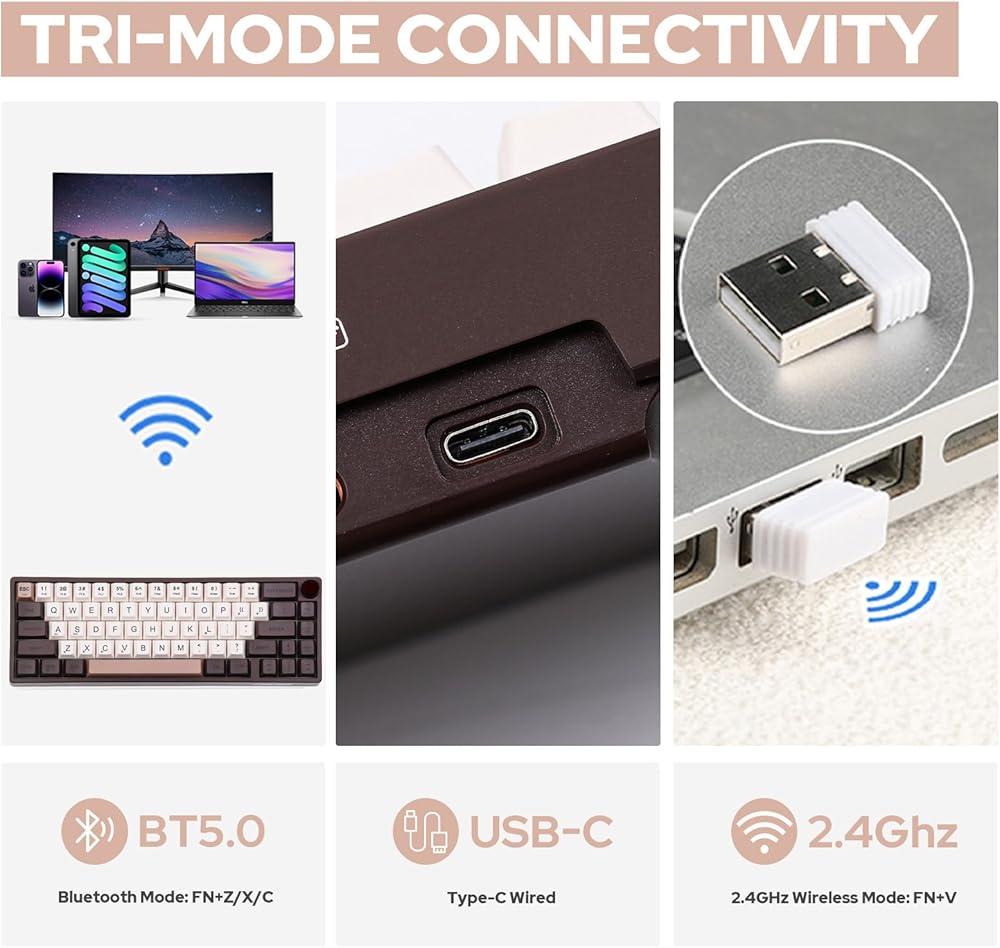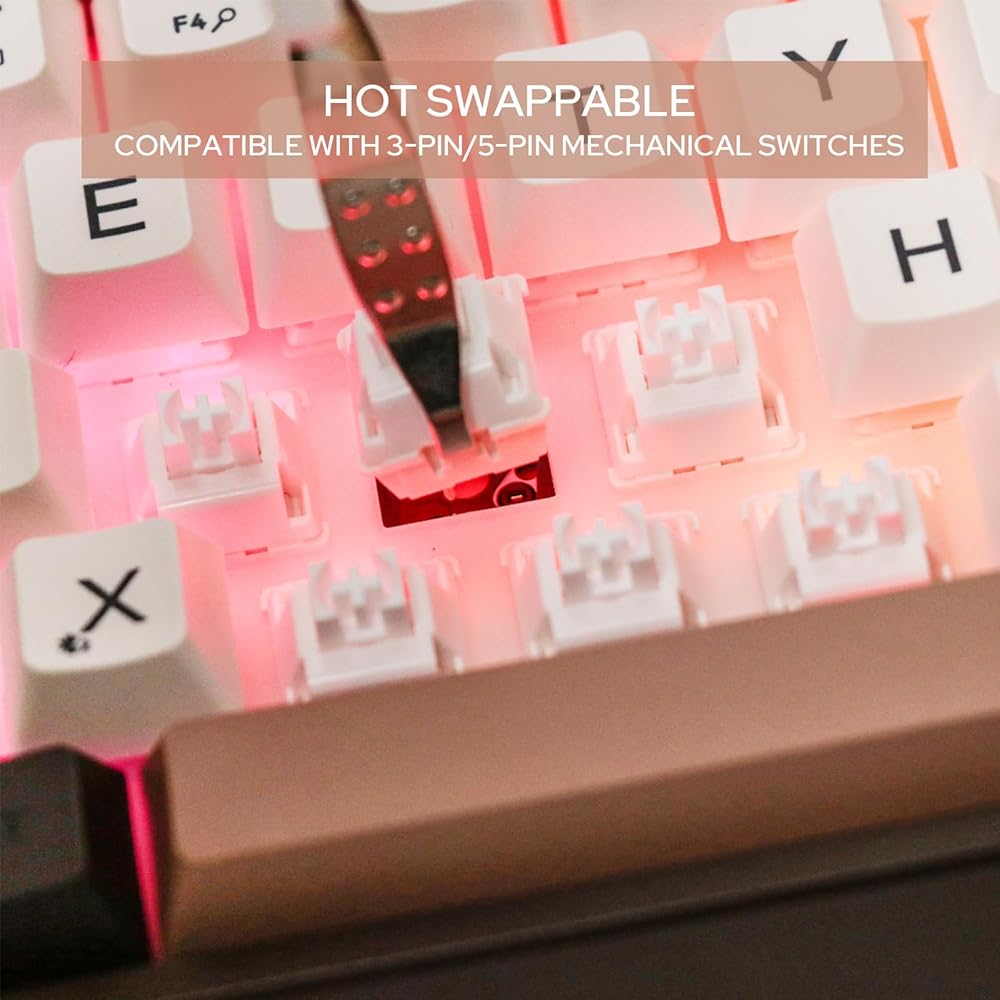【RGB Backlights & Rotary Metal Knob】Adding a visual experience to your keyboard, the Feker IK65 comes with vibrant RGB backlights. These aren't just for show - they serve a functional purpose as well. The RGB backlights illuminate each key, making typing in dim environments a breeze. To enhance user interaction, the Feker IK65 is fitted with a sleek, rotary metal knob. This multifunctional knob adds a touch of sophistication to the keyboard and is not just about aesthetics.