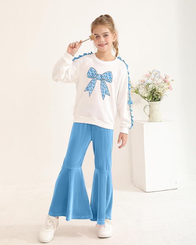 Avaiable Size:the sweat outfits for girls including a crew neck top and a flare pant.please refer to the picture on the under to choose.the cute clothes for little girls,teen girls who them age from 8 to 12.this fall clothes has girls clothes size 8,pants for girls 9,girls size 10 clothes,flare pants for girls 11,cute outfits for girls 12.