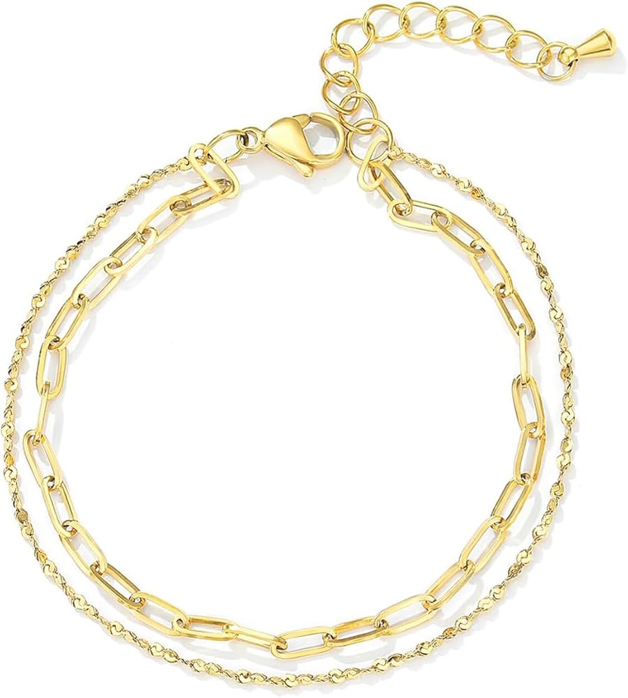 Elegant Double-Layer Design - Features a stylish combination of wave chain and bar-link chain for dimensional elegance. The 6.7-inch length with 1.5-inch extender ensures perfect fit for most wrists (16.5-19cm). Ideal for stacking with other dainty bracelets or wearing solo as a minimalist statement piece.