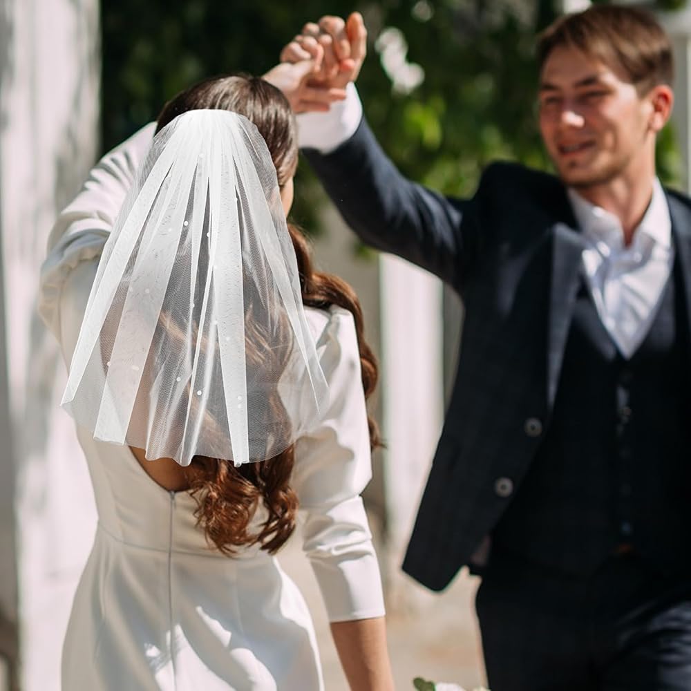 Great accessories: This short veil is an ideal choice for you to take unforgettable photos and create a joyful and festive atmosphere. It is also a great accessory for you to attend a bachelorette party, and it is perfectly matched with your dress