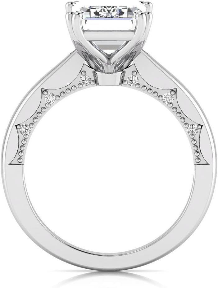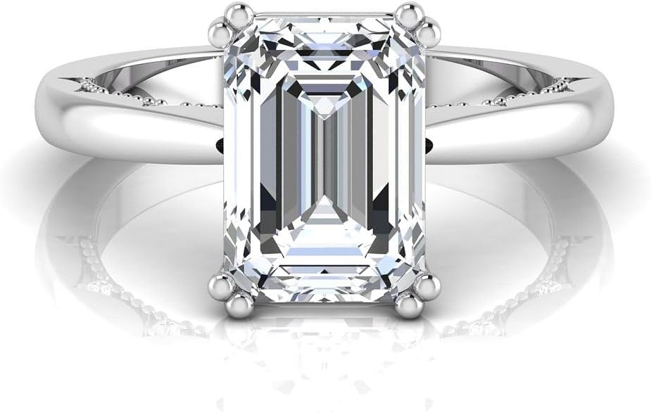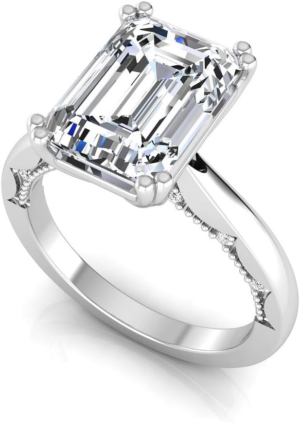 3.10 Carat Emerald Cut Lab Grown Diamond (3 Ct, F, VS1) IGI Certified 14K Gold Milgrain Solitaire Engagement Wedding Ring for Womens