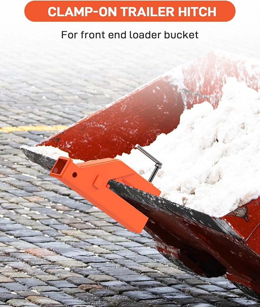 - Clamp-on trailer hitch perfect for tractor buckets, enhancing versatility.