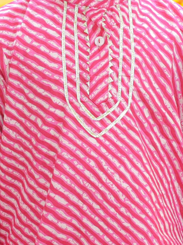 - DESIGN PATTERN: Vibrant yellow and white leheriya print creates an eye-catching diagonal striped pattern throughout the kurta