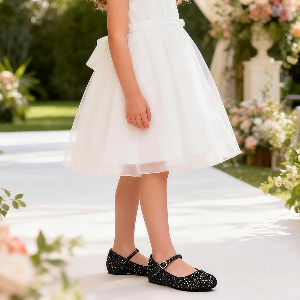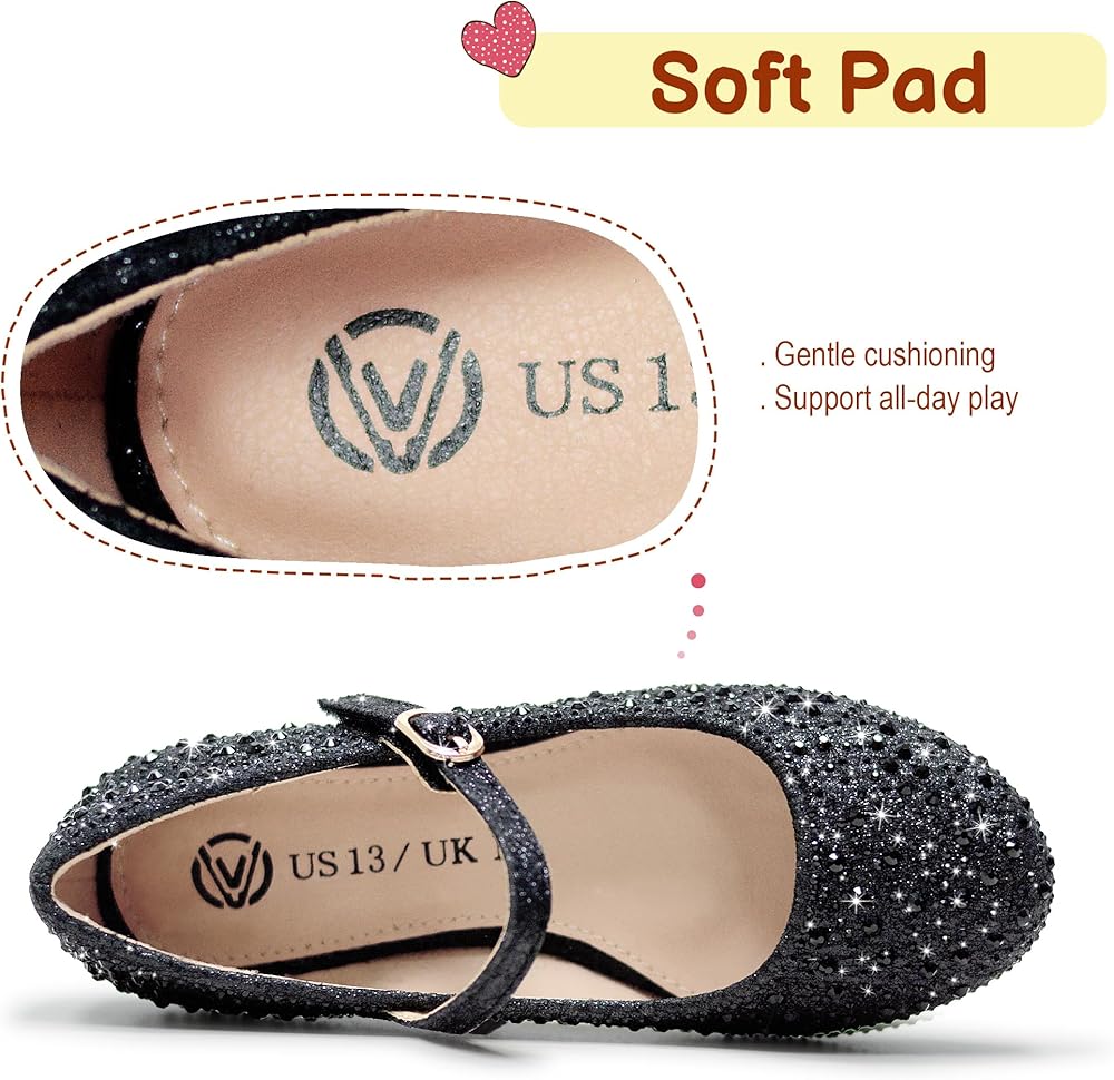 【Sparkly Rhinestone Design】: These exquisite girls dress shoes are adorned with shimmering rhinestones, adding a touch of elegance perfect for parties, weddings or school. They are ideal flower girl shoes and princess shoes that will make your little one feel special on any occasion.