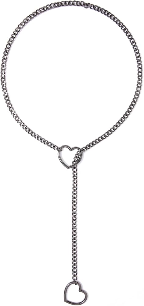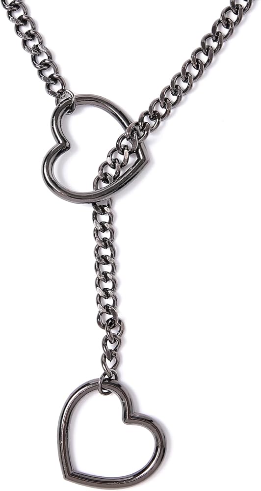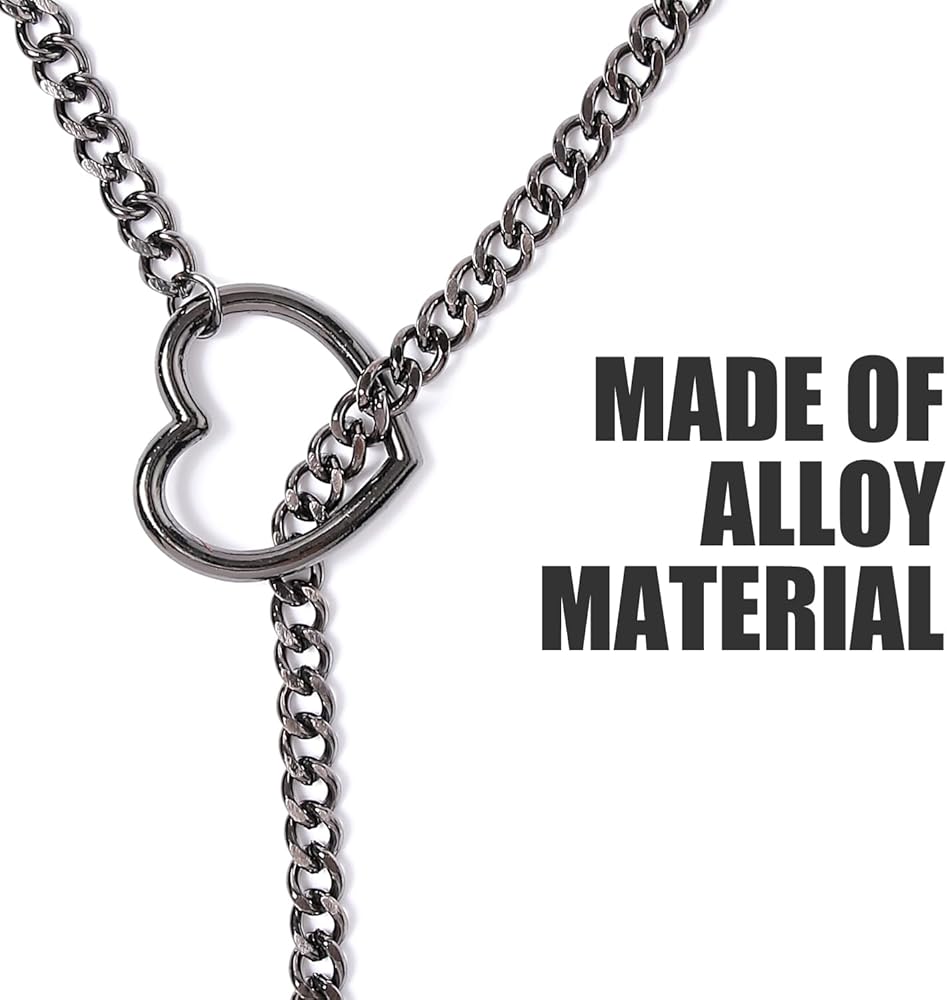 Heart Slip Chain Necklaces for Women,Stainless Steel O-Ring Adjustable Lariat Heart Y-Necklace,Punk Gothic Cuban Collar Choker Necklace for women