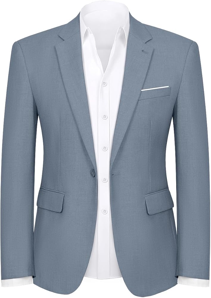 Classic Design:This slim-fit men's suit jacket adds elegance to your formal wardrobe, ideal for business occasions, weddings, or proms. It comes in classic colors such as navy blue, black, and light gray, and can be paired with various men's dress pants. The jacket features 2 flap pockets, 1 chest pocket, and 2 inner pockets, offering great practicality.