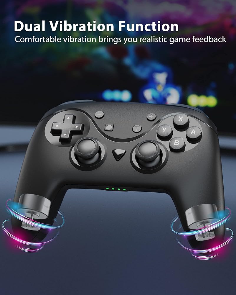 【ADJUSTABLE DUAL VIBRATION MOTORS & MOTION CONTROL】 The Switch controller can use the gyroscope axis function on the host side, and supports the dual motor dual vibration function, which could give you different vibration feedback, so that leave you immersive and ultimate gaming experience. With the built-in gyroscope axis to detect detail movements, this controller can provide an excellent sense of control. The vibration has 4 grades: 75% - 50% - 22% - 0%, you can choose any grades you like!