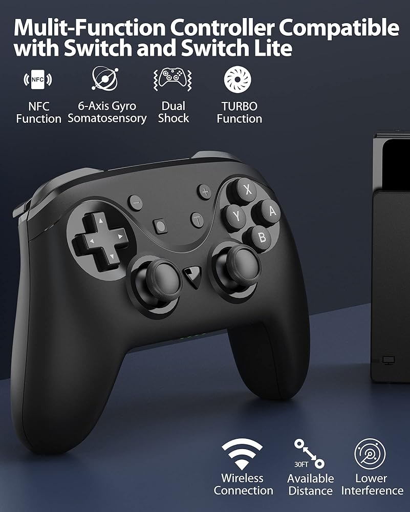 PERFECTLY COMPATIBILE SWITCH CONTROLLER】 Switch Pro Controller for Switch/Switch Lite/Switch oled. The Switch Pro Controller can be upgraded by update software via connecting it to PC. Up to four wireless Pro controllers can be connected to a Switch/Switch Lite/Switch Oled console simultaneously, so you could play games with your friends or family happily.