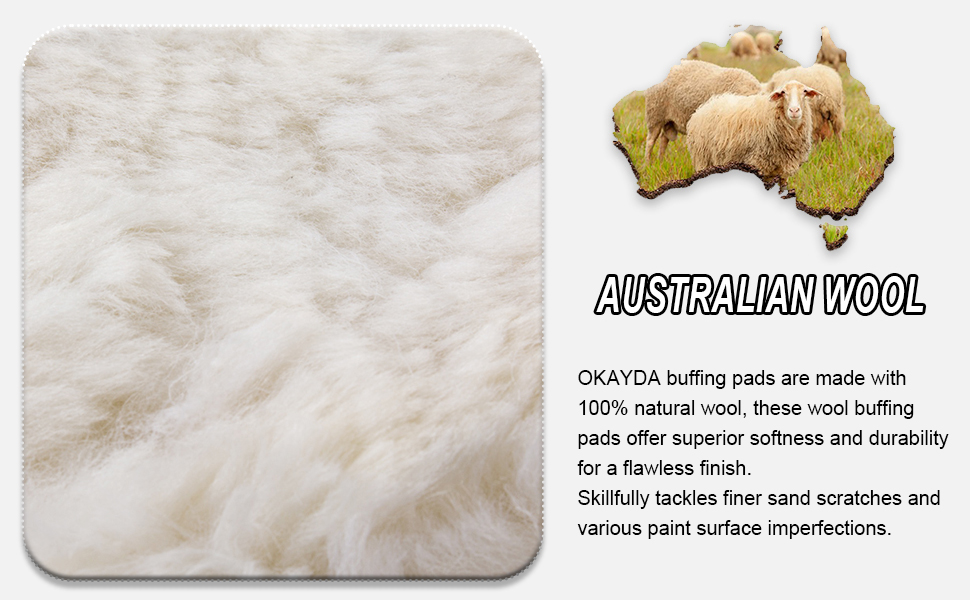 [ About Polishing Pads ]: Polishing pads are made from natural wool and some loose wool fibres are normal. Make sure to idle your polisher with the pad for a few minutes to remove any loose wool fibers.