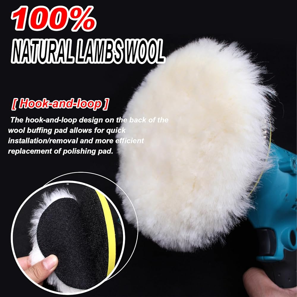 [ Hook-and-loop ]: The hook-and-loop design on the back of the wool buffing pad allows for quick installation/removal and more efficient replacement of polishing pad.
