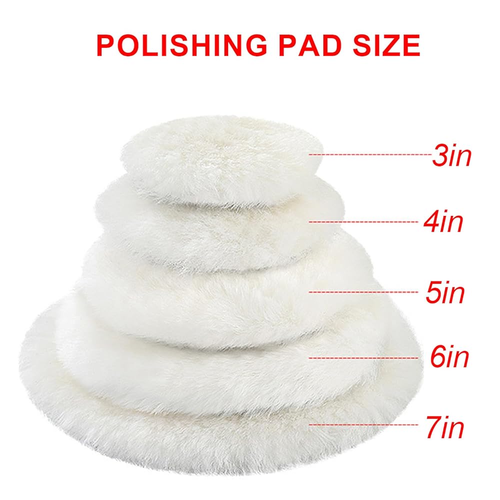 [ Multiple Sizes ]: Wool polishing pads are available in 3in(10pcs), 4in(10pcs), 5in(5pcs), 6in(2pcs), 7in(2pcs) sizes for you to choose from, for use in different polishing machines for you to use.