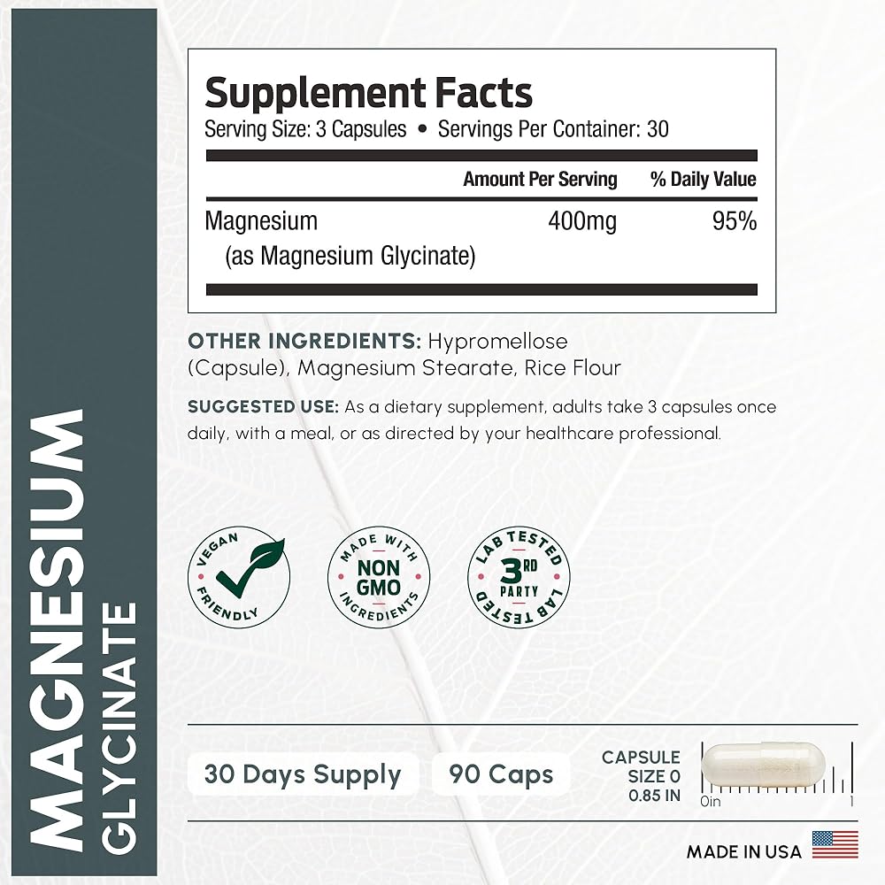 400MG ULTRA HIGH ABSORPTION DOSE - Magnesium is a vital nutrient for regulating many body processes. This magnesium glycinate supplement is formulated for high bioavailability and maximum absorption when compared to other forms of magnesium. Lab tested for absorption.
