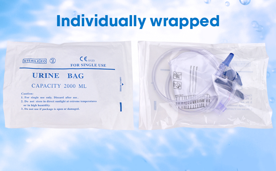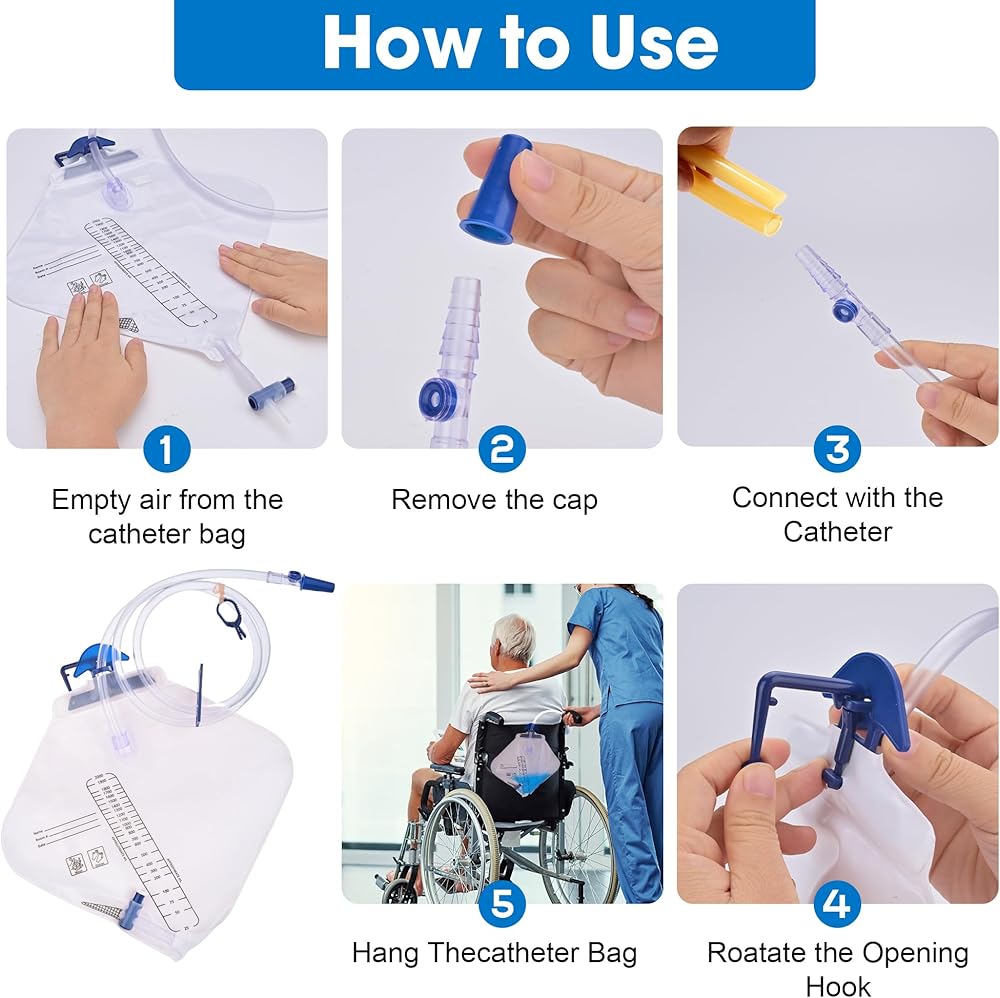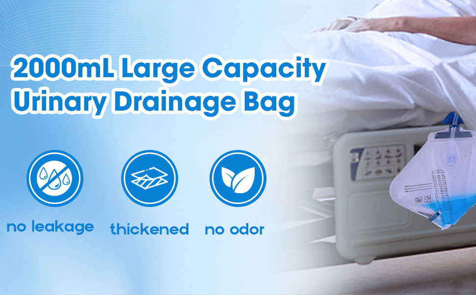 2000ML Catheter Bag for Overnight: With a 2000ml(67.64OZ) capacity, this urine bag minimizes frequent emptying and replacements—ideal for overnight use, hospital stays, or bedridden patients
