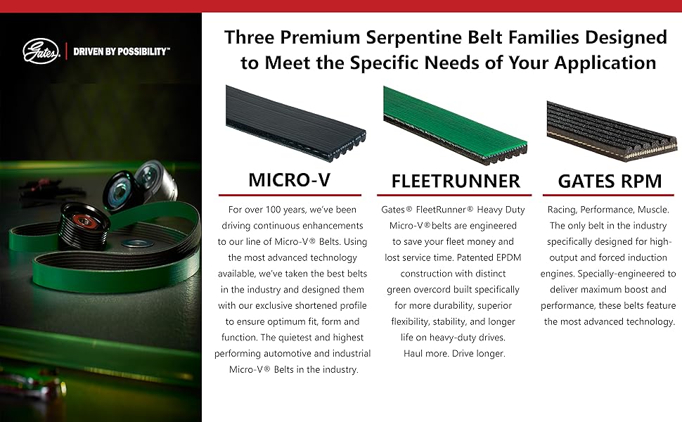 FleetRunner Heavy-Duty Micro-V belts are engineered to save your fleet money and reduce downtime. Patented EPDM construction with distinct green overcord is built specifically for more durability, superior flexibility, stability and longer life on heavy-duty drives. Haul more. Drive longer.