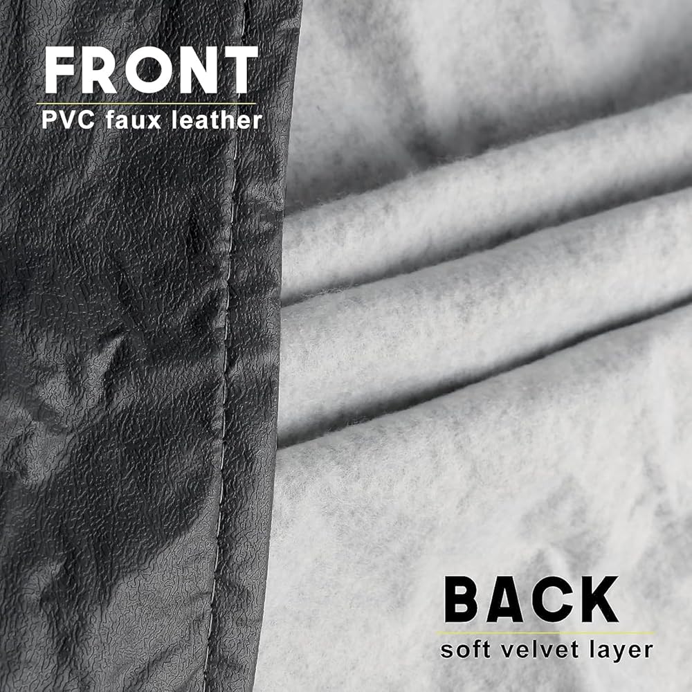 🚘【Performance Faux Leather Material】: Crafted from premium faux leather material, this fabric is treated with UV and waterproof coatings, ensuring its adaptability to all weather conditions throughout the seasons. Its resilience extends to being dirt-resistant, heat-resistant, and scratch-resistant. On the reverse side, a velour material offers gentle care, akin to tending to a beloved infant.