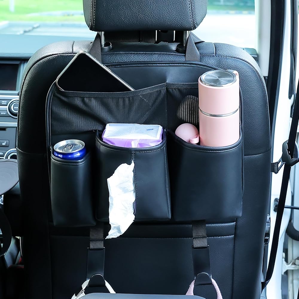 Durable PU Leather Construction & Practical Design: Made from high-quality, easy-to-clean PU leather that resists spills and wear. The organizer efficiently utilizes often-wasted seat-back space, significantly reducing cabin clutter. It keeps essentials neatly stored yet instantly accessible for both drivers and passengers, enhancing convenience and tidiness on every journey.