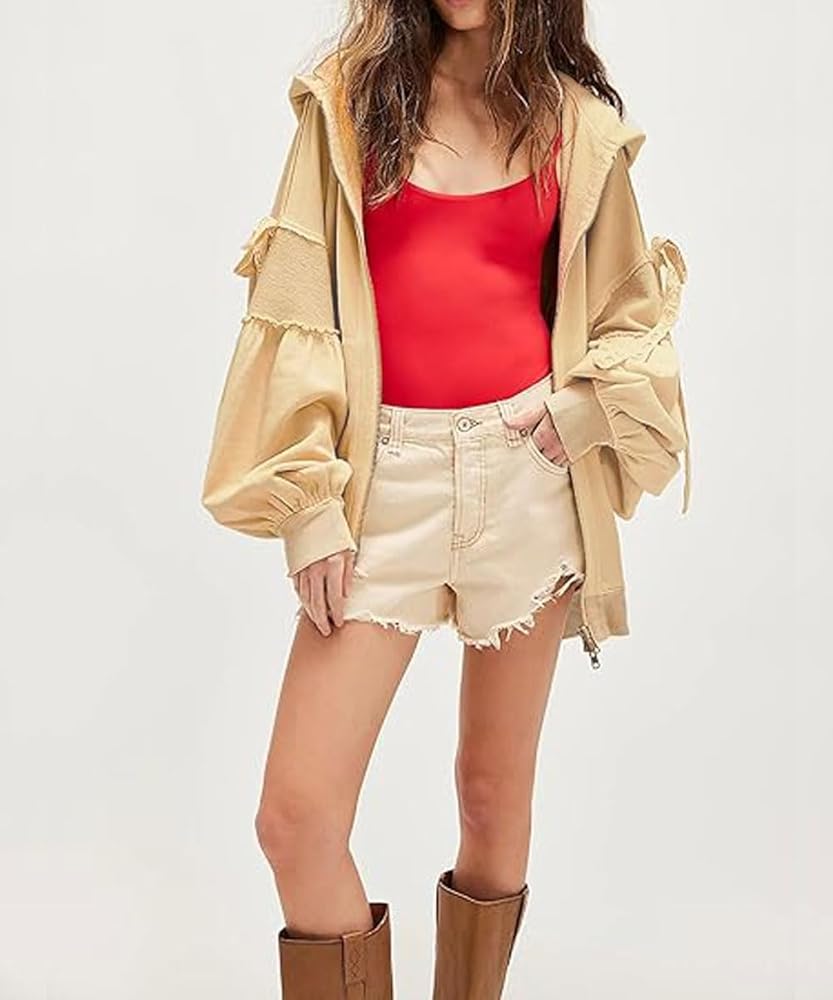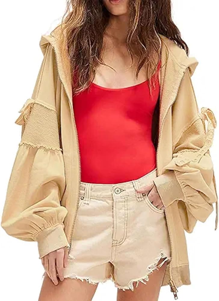 FEATURES: Women's Fashion Hoodies & Sweatshirts Features In Full Zipper ,Long sleeve Hooded/Chic Bow Straps On the Sleeves/Solid Color/Kangaroo Pockets/Dropped Shoulder/ribbed hem and cuffs/loose fit style/Open Front Zip up More Easy To Dress Up Or Down, It Won't Mess Up your Hairstyle and Makeup.