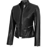 Classic & Comfortable Design: With a durable zipper, handy pockets, and a timeless design, this women's leather jacket combines everyday comfort, thanks to its soft polyester lining with versatile style for both casual and dressy outfits.