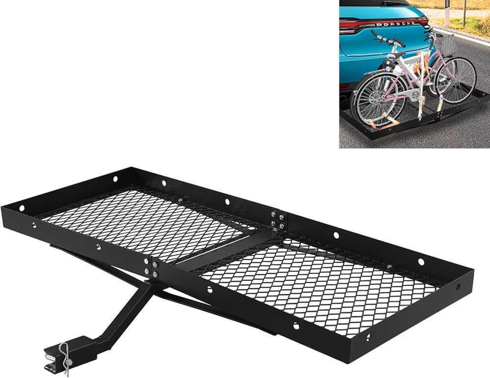 • 【MULTIFUNCTIONAL APPLICATION】: This hitch cargo basket is ideal for large and bulky cargo, such as bicycles, muddy lawn tools, camping supplies, coolers, tailgate grills, construction materials and anything you don't want to bring into the vehicle!