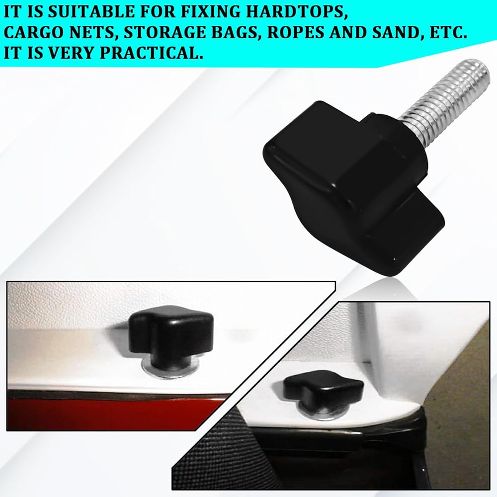 【Easy Installation】The hardtop fasteners are easy to install, requiring no tools. Simply screw the nut plates onto the studs and tighten the washers. Make sure the installation is firm and not easy to fall off or loosen