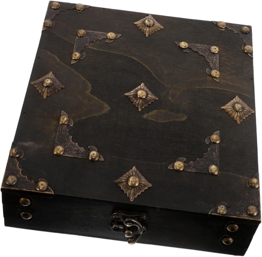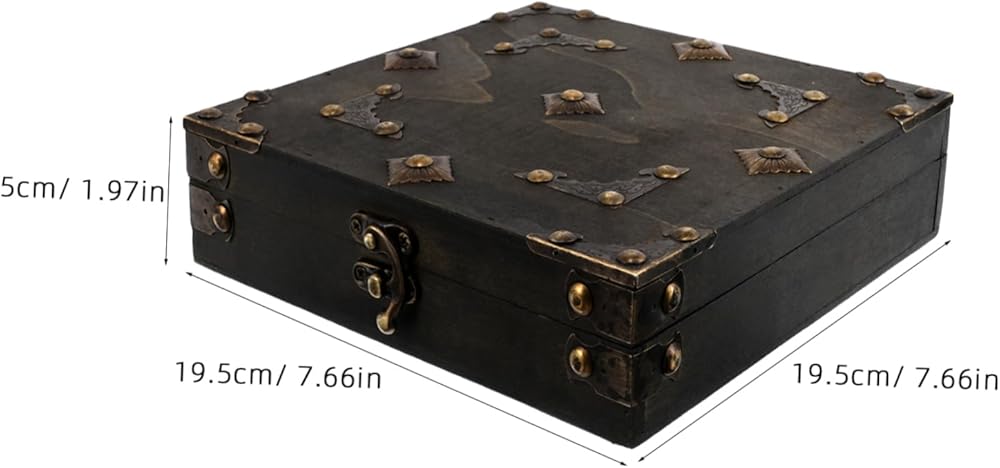 -Size:19.50X19.50X5.00cm/7.66X7.66X1.97in wooden treasure chest