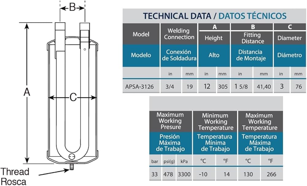 Appli Parts APSA-3126 Acumulador de Linea de Succion 3/4 pulg para sistemas de refrigeracion R22,R134a,R404A,R507 Presion Maxima 478 psi Temperatura entre -10 C y 130 C