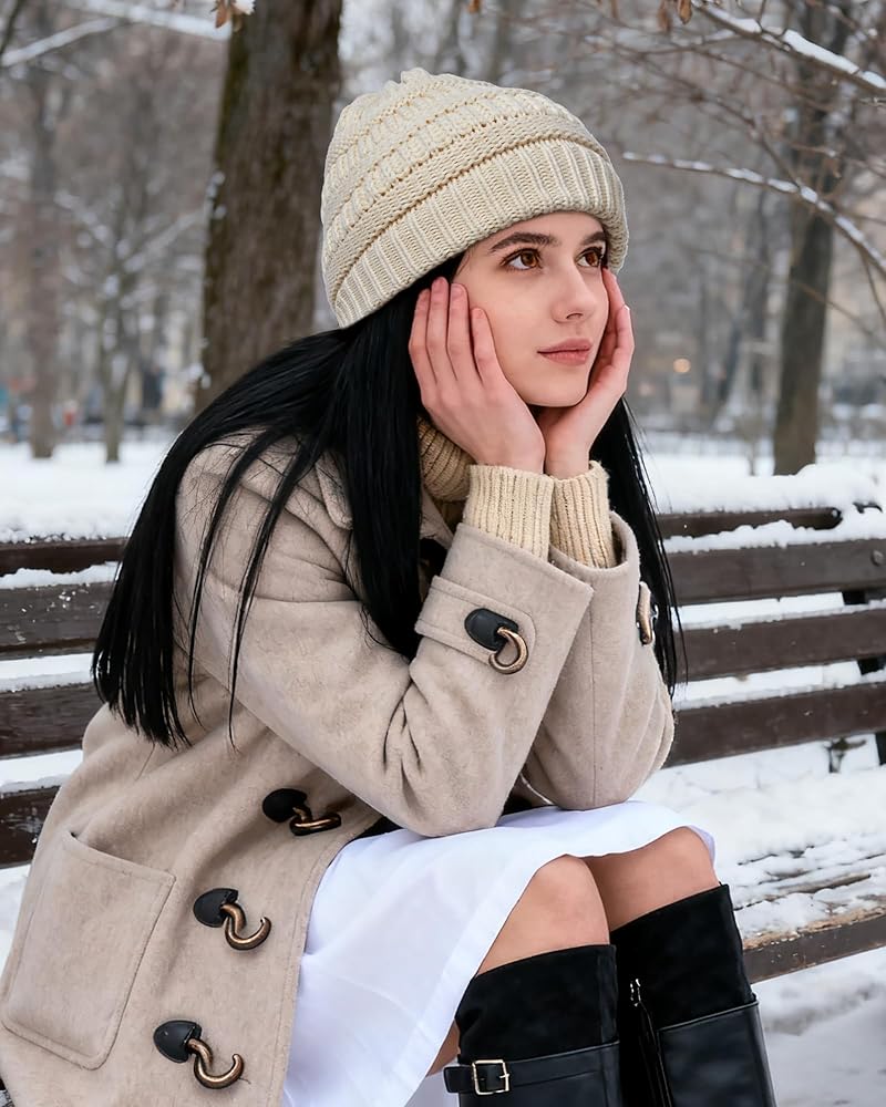 Premium Comfort Fabric: Crafted from high-quality acrylic and polyester blend with smooth satin lining. This medium-thick women beanie delivers exceptional comfort and warmth for fall and winter, all while keeping your style effortlessly chic