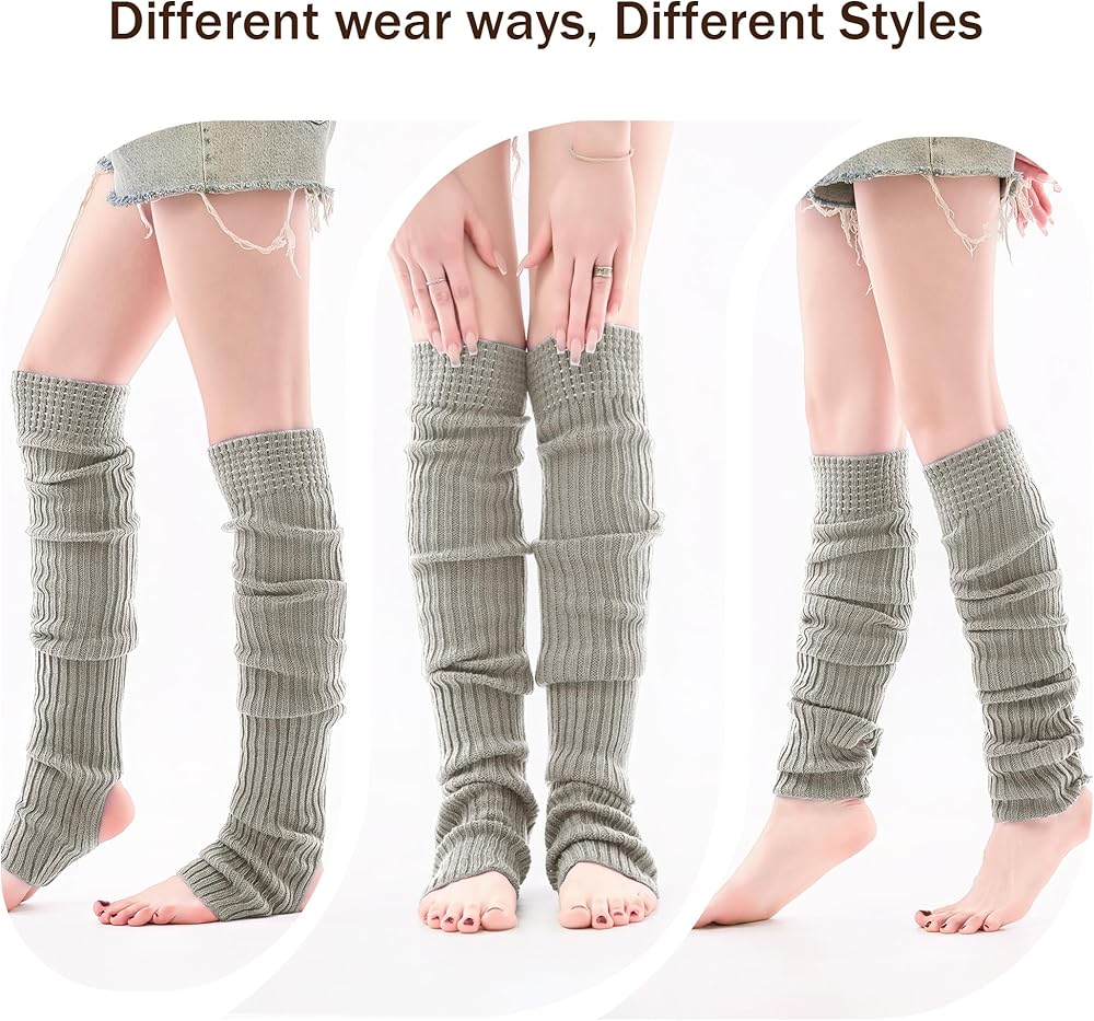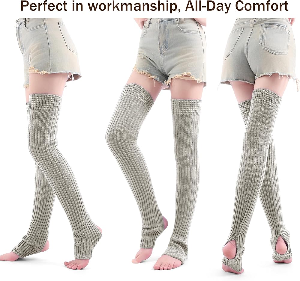 【Stay-Put Design with Seamless Comfort】 Thigh high leg warmers engineered with gentle-grip elastic bands that maintains position through intense dance routines or yoga flows. The smooth, seamless toe construction eliminates irritation points for blisters-free wear.Can be casual to match clothes and heeled booties, mid-calf wedgies, bare legs and sky high stilettos.