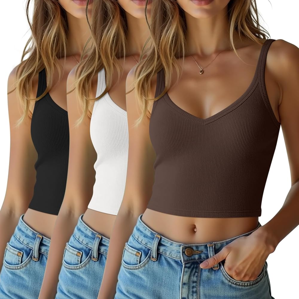 3 Pack V Neck Cami Tops: These package comes with 3 pieces crop tank tops in various colors, you can choose the colors as you need to mactch your fasion outfit