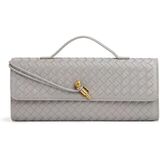 [ELEGANT WOVEN DESIGN] Experience timeless sophistication with our evening clutch, meticulously crafted from soft, vegan PU leather in a unique woven pattern. The sturdy, gold-tone hardware adds a luxurious touch, making this woven leather handbag a standout accessory that beautifully showcases your personal style