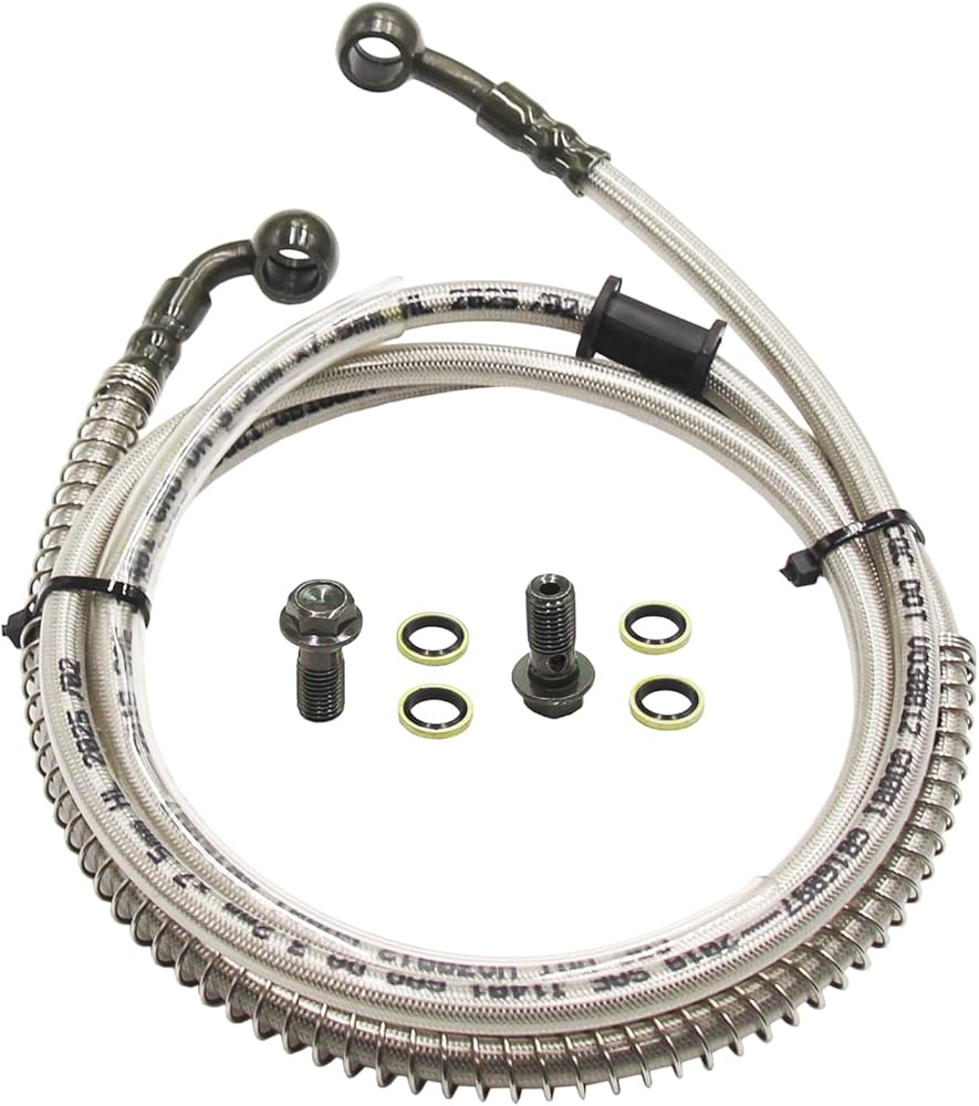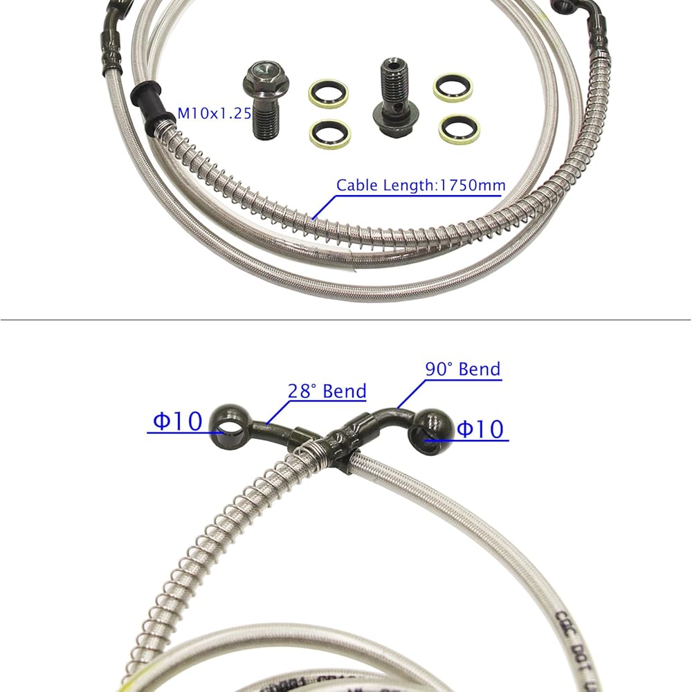 - Package Includes: 1x 1750mm Brake Hose Line + 2x Bolts + 4x Gaskets + 2x Cable Ties