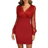 Features: This glitter dresses for women party night boasts a V-neckline and sheer mesh puff sleeves, exuding elegant party vibes to enhance your beauty, charm, and style
