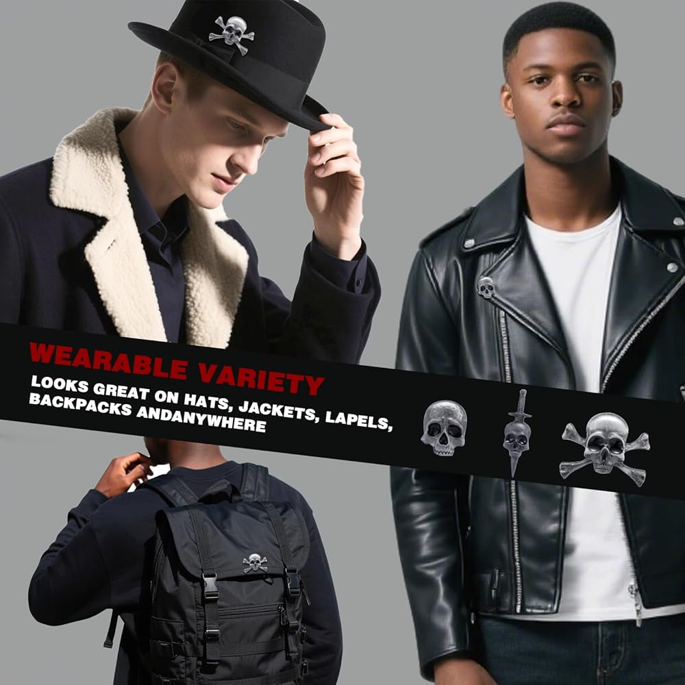 • 3 Styles - You will receive 3 different styles of skull brooches, all of which are unique enough to meet your basic matching needs. It is perfect for those seeking a unique and edgy accessory, the skull pin will add a touch of cool to your decor.