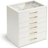 4-Layer to Organize Everything: 35-grids jewelry tray for small jewelries like pendants, rings and earrings, while 4-grids and 6-gris jewelry trays are suitable for holding large jewelries like necklaces, brackets and bangles and so on. The last tray feature 4 large slots on the left for holding large earrings and necklaces, while more than 10 slots on the right for keeping small jewelries like rings and small earrings in place