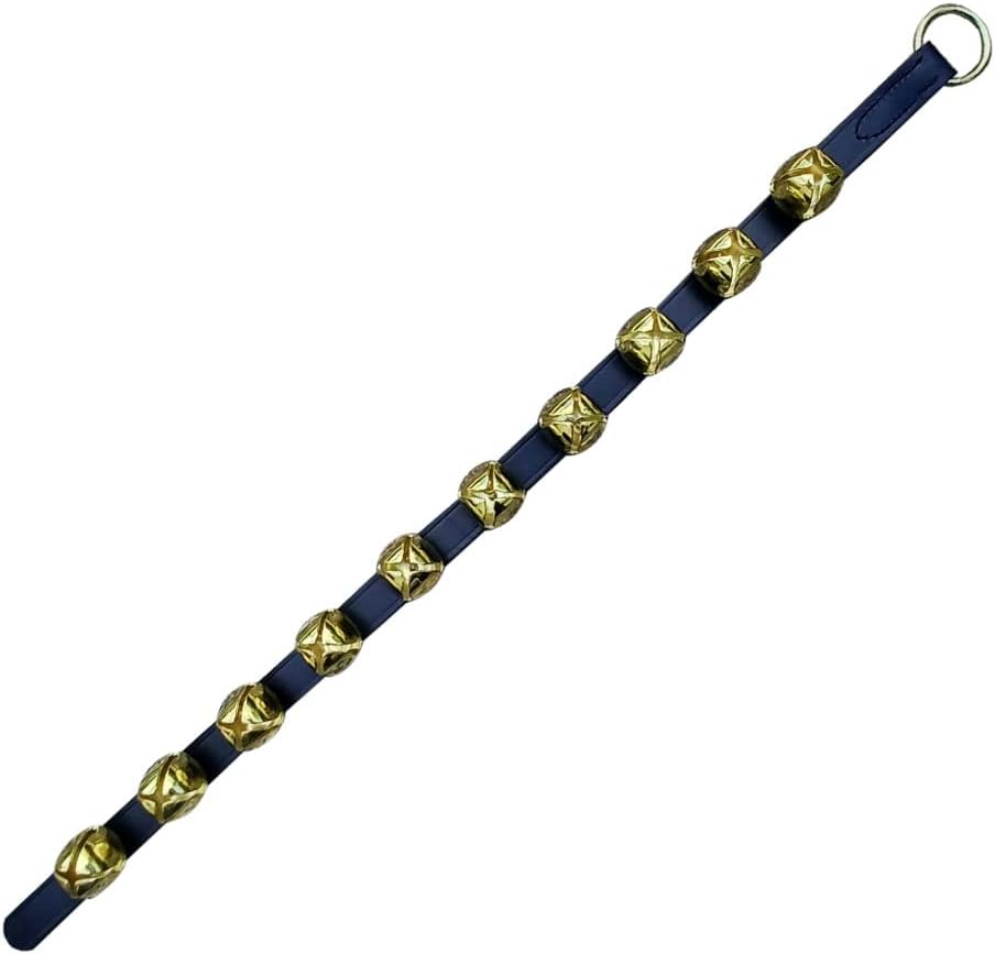 GENUINE LEATHER STRAP: Ten decorative hanging bells are affixed to a sturdy, red genuine leather handmade strap which measures about 30” long x 1” wide. The red leather strap helps accent the brass door Christmas bells for home decoration.