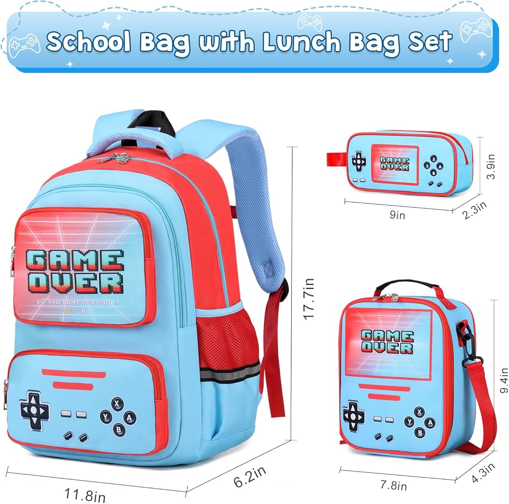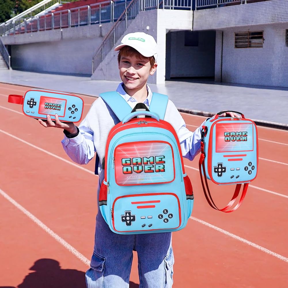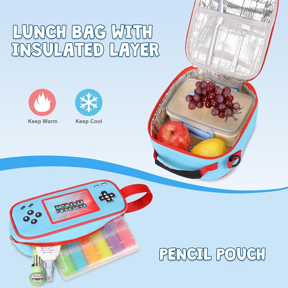 【Game Luminous Boys Backpack】Perfect gamer school backpack set with insulated lunch bag and pencil case, meets all you need back-to-school! The stylish cool luminous school backpack for boys after absorbing light for about 15 minutes, you can see the fluorescent effects of the print in the dark. Plus a fun console pendant. Your little boy will love this cool luminous school bag.