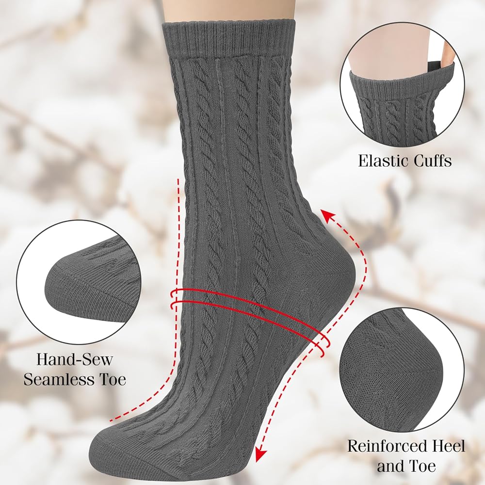 Soft Fabric: Crew socks for women are made from pure cotton for ultimate comfort; The breathable fabric keeps your feet warm and dry for comfort; Our cotton socks for women are of medium thickness and are suitable for year-round wear