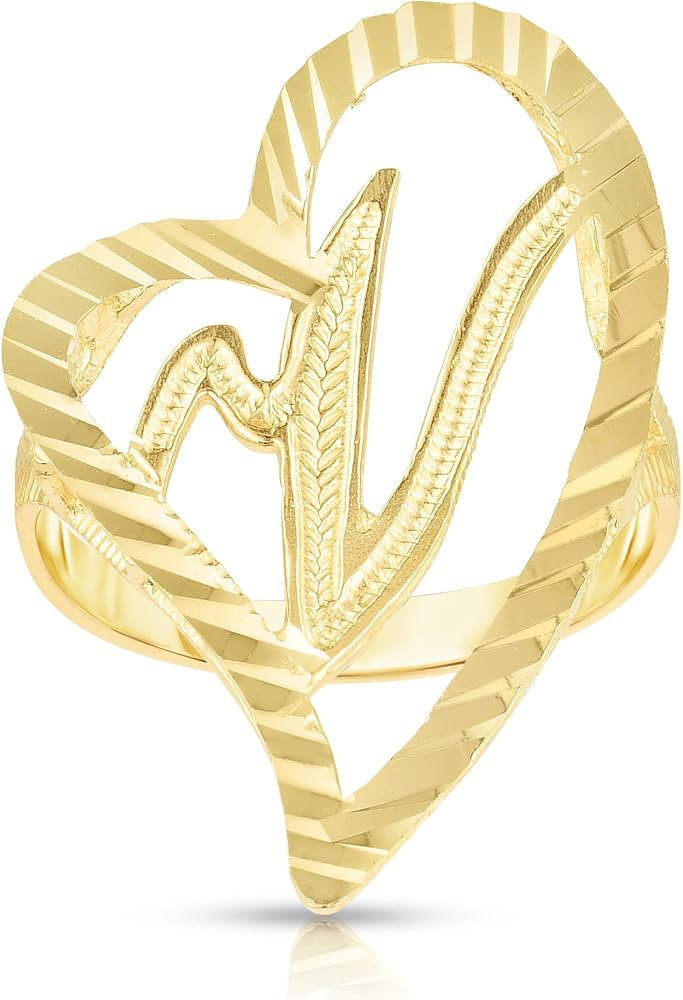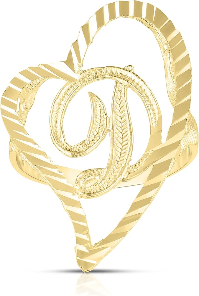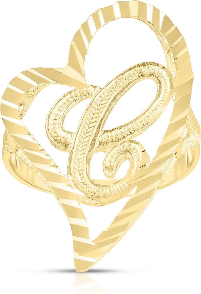 GENUINE 10K GOLD— Crafted entirely from authentic 10 karat yellow gold, this elegant cursive initial ring features a charming heart detail, offering timeless beauty and lasting value. Perfect for everyday wear or meaningful gifting.