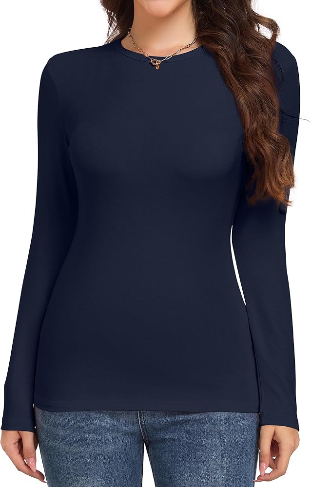 AUHEGN Long Sleeve Shirts for Women Fall Basic Crew Neck Slim Fit Underscrub Tops Soft Stretchy Layer Undershirt Outfits Clothes 2025