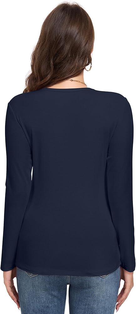 Soft & Stretchy Fabric – Our long sleeve shirts for women are crafted from a breathable blend of rayon and spandex, delivering excellent elasticity and all-day comfort, perfect as thermal shirts for women or casual tops