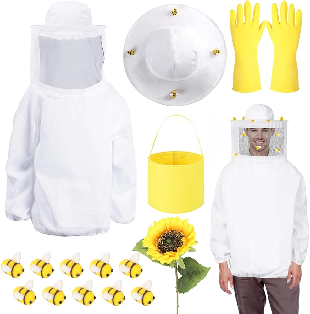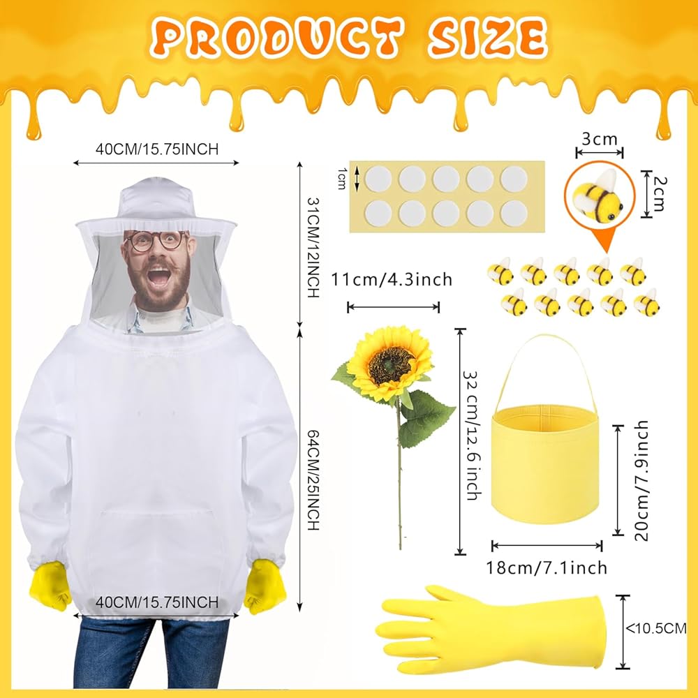 【Fabulous Role Play Accessories】you will receive a beekeeper jacket,10 pieces of cute felt bees,a pair of yellow beekeeper gloves,a yellow felt bucket,a artificial sunflower and 1 sheet of double sided tape with 50 round double sided tapes,ideal combination for you to wear, you can wear them on various party and it will make you eye catching in the crowd