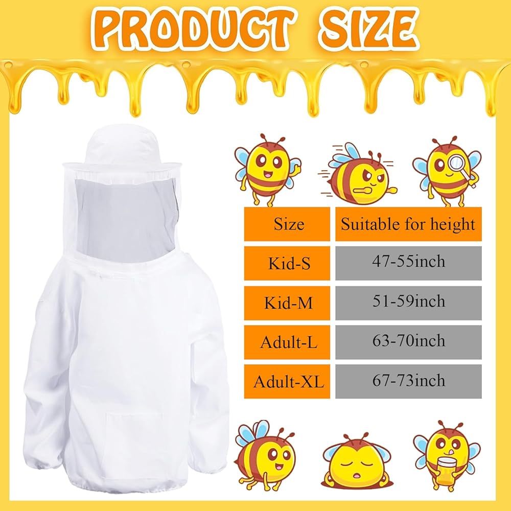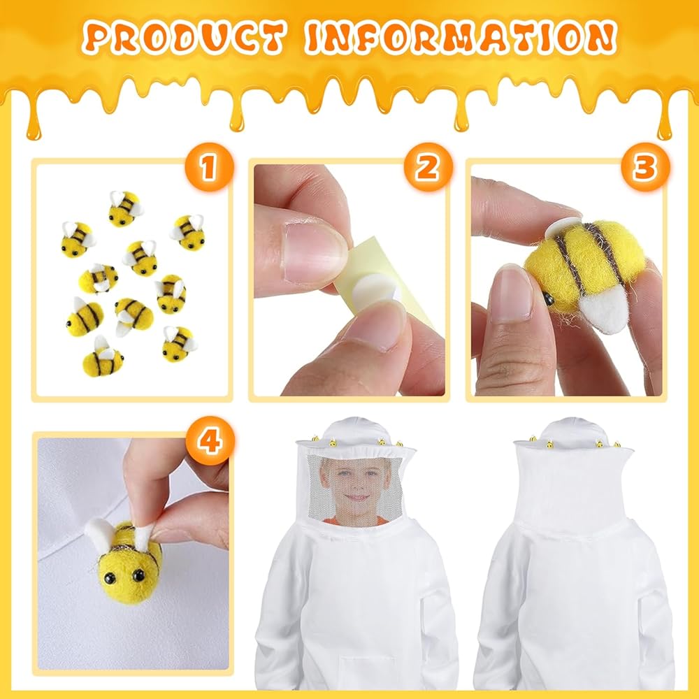 【Quality and reliable】jacket is made of polyester fabrics, durable and breathable, comfortable to wear, not easy to break or fade.The gloves are made of latex,comfortable and durable.The double sided tapes can fix felt small bees on clothes for a long