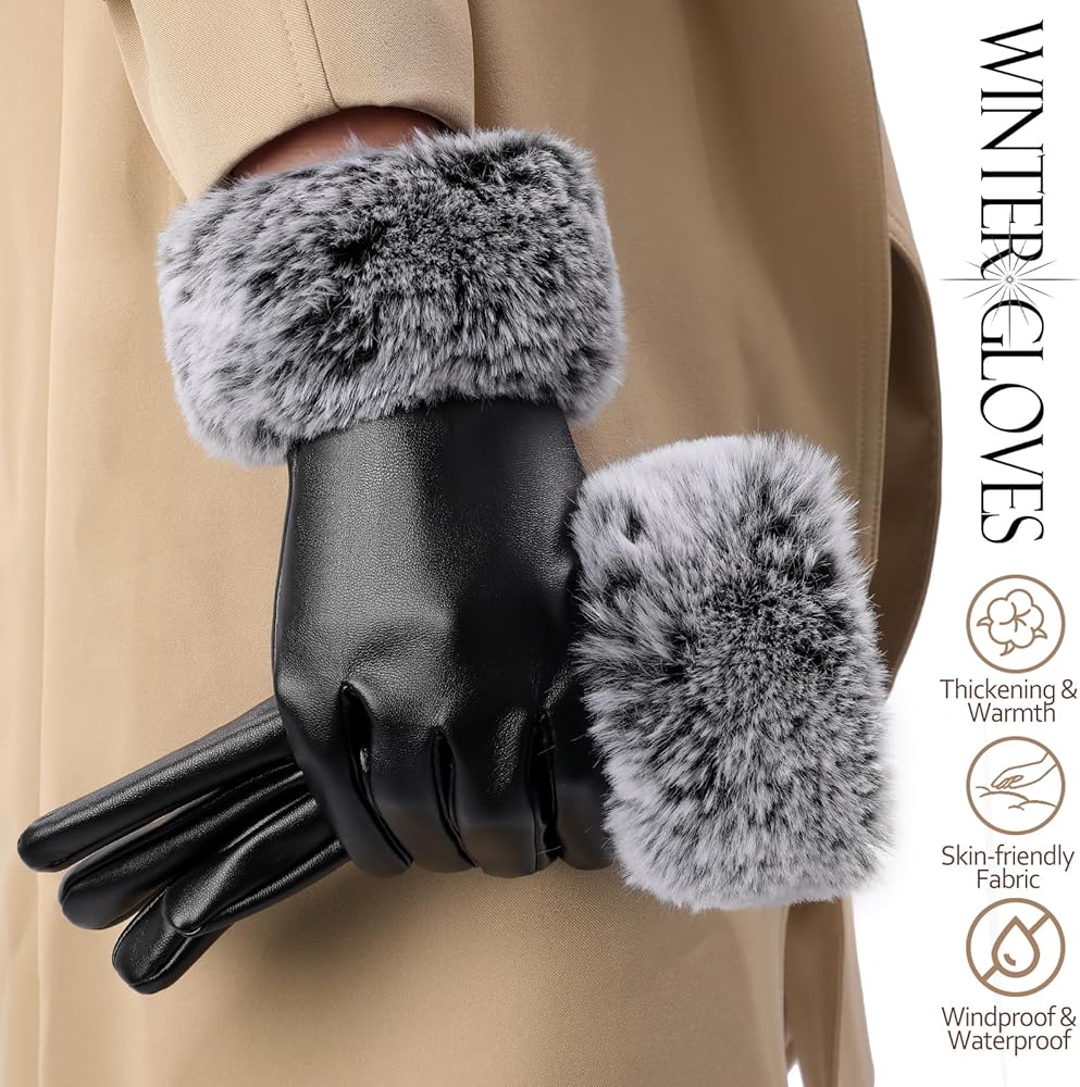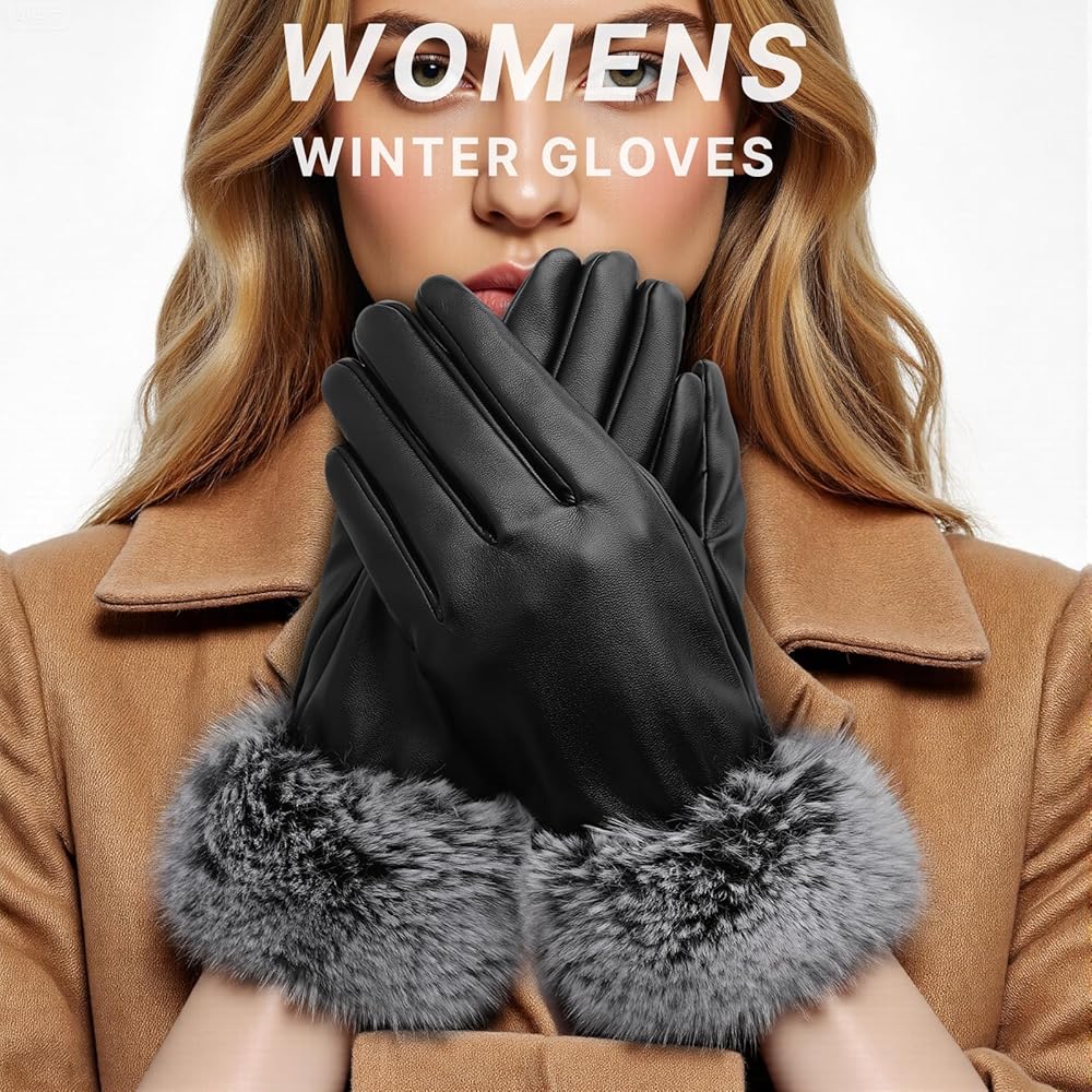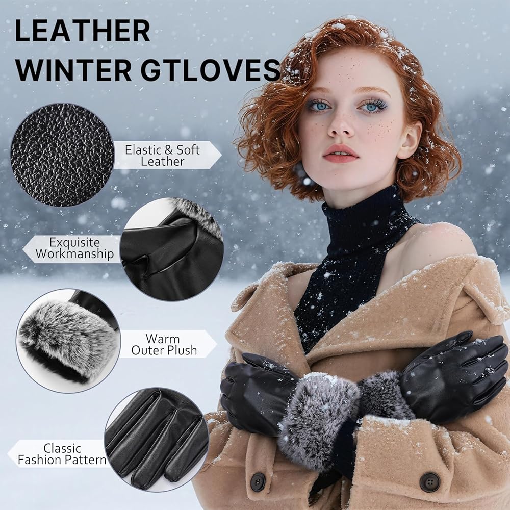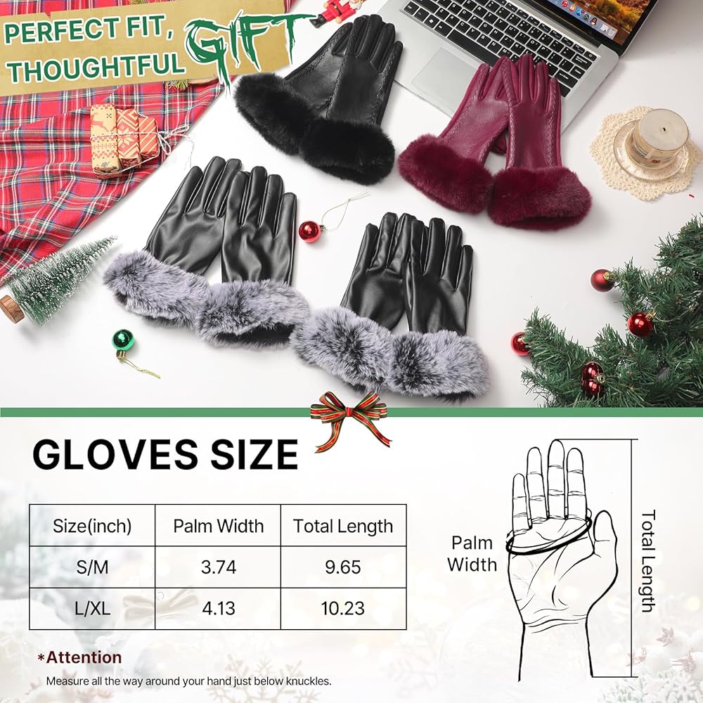 STYLE & SIZE OPTIONS: Our womens winter gloves are available in 3 styles, you can order these black leather gloves for yourself or choose the proper style as a special present for friends or family members. In addition, our gloves come in 2 sizes, please refer to the size information provided by us before purchase, if your palm is wider and thicker, please choose the larger size.