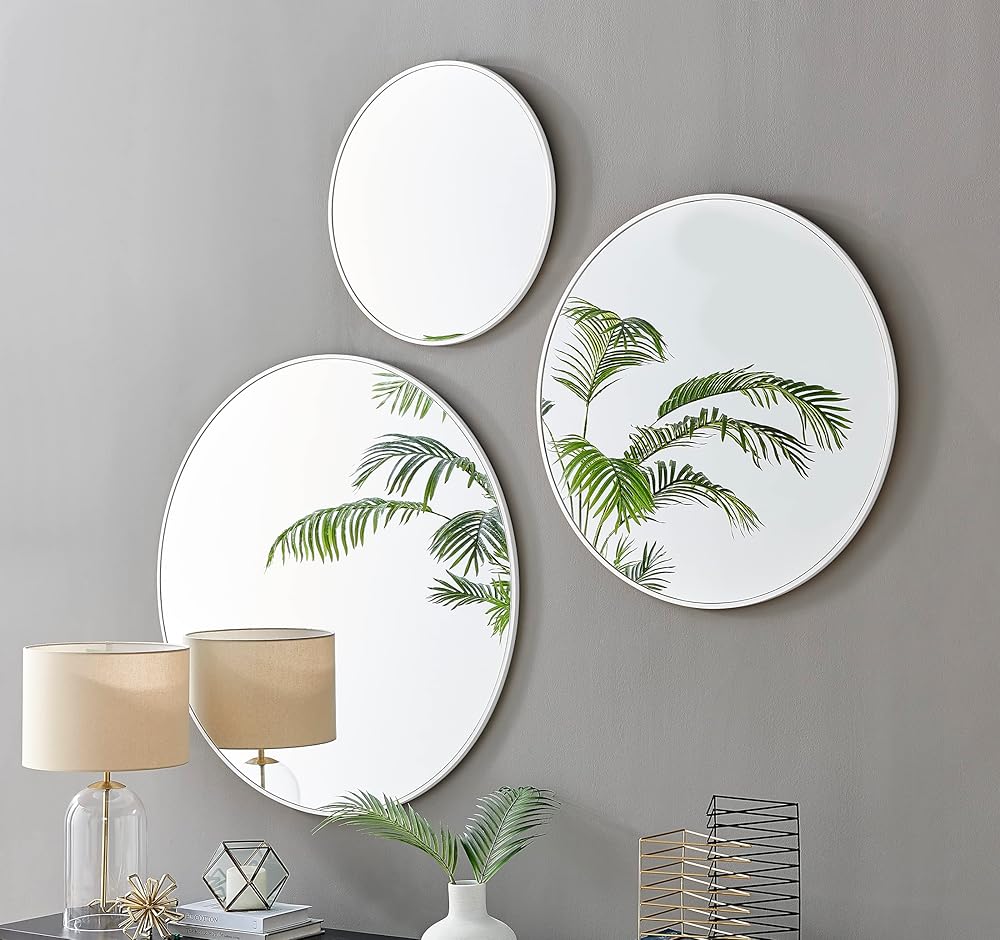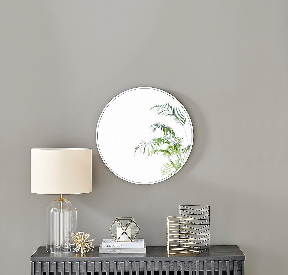 The metal frame of this stylish round mirror is a subtle design which frames this large mirror perfectly. The metal frame doesn't overwhelm the rest of the mirror but instead, accentuates its curves and lets the expanse of the mirror do the talking.